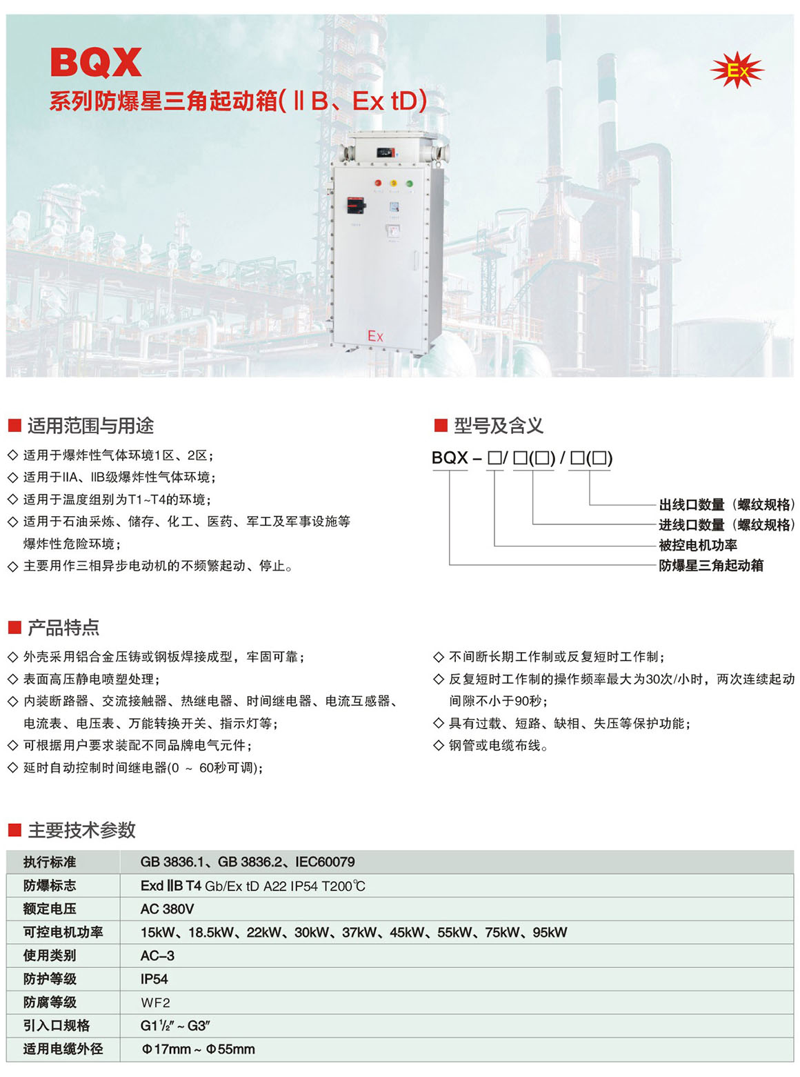 产品中心 防爆电器系列 BQX系列防爆星三角起动箱(ⅡB、Ex tD)