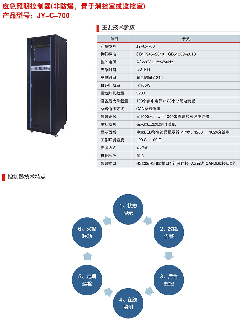 产品中心 消防应急照明和疏散指示系统 JY-C-700系列应急照明控制器