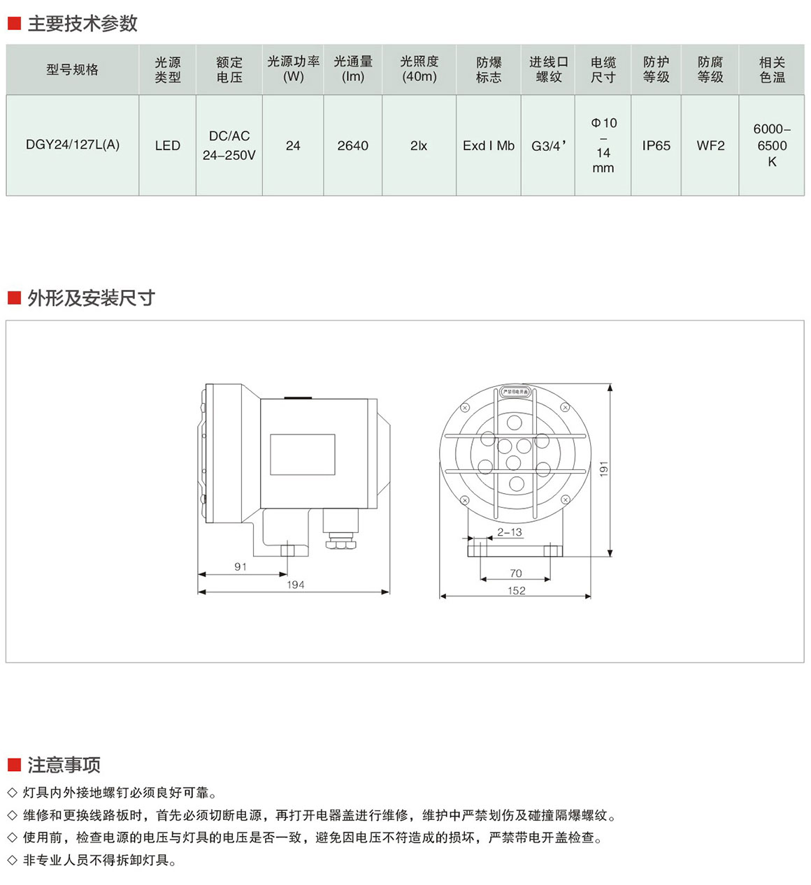 产品中心 矿用防爆灯具系列 DGY24/127L(A)系列矿用隔爆型LED机车灯