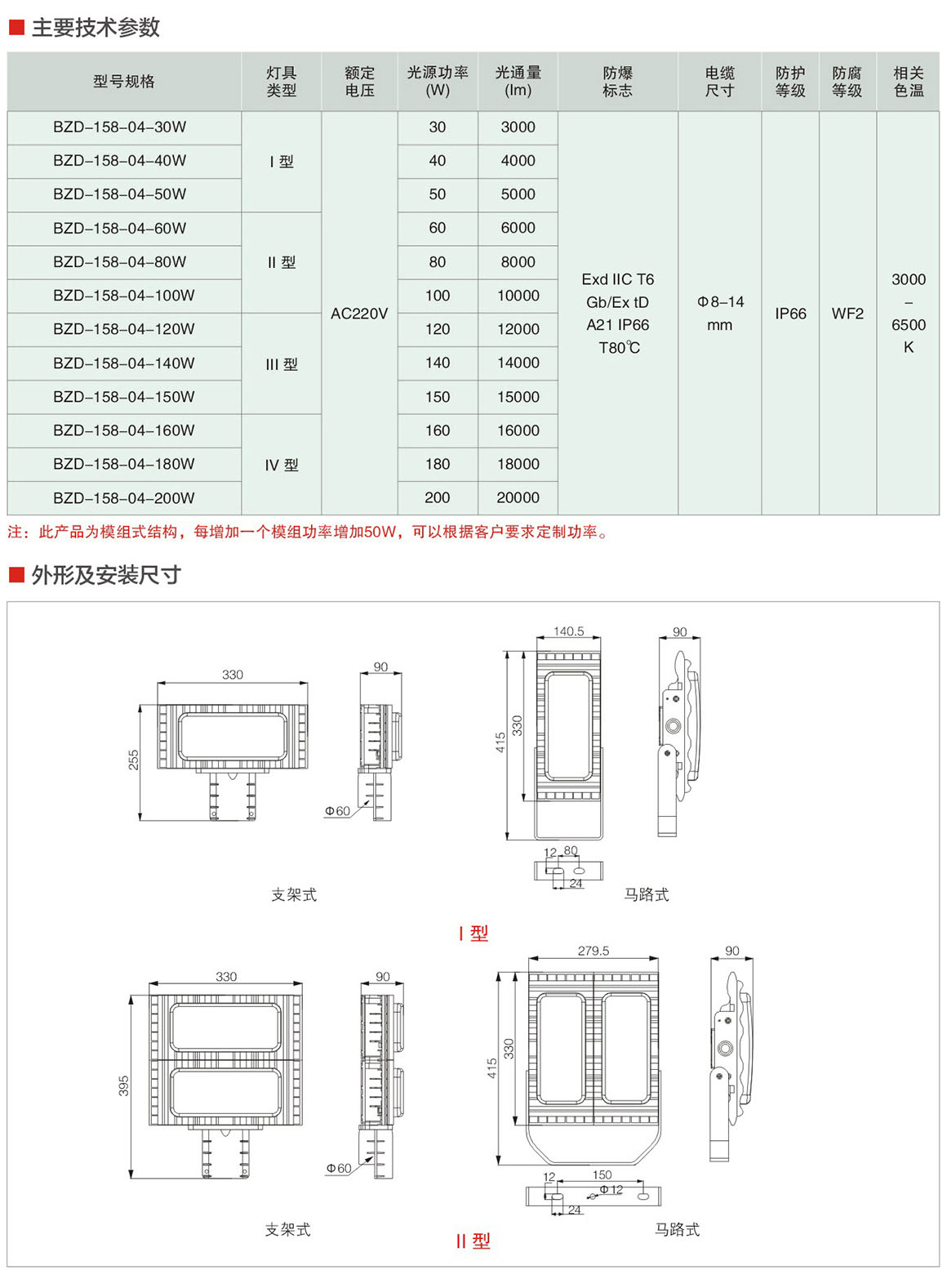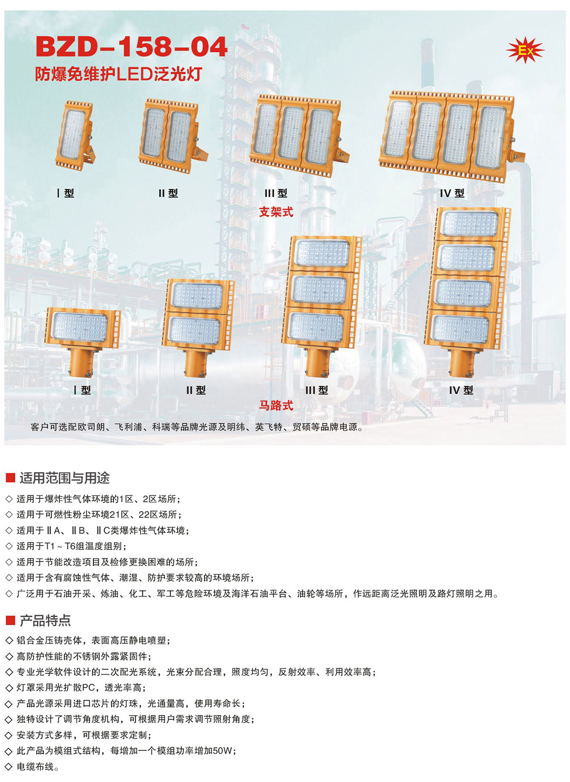 产品中心 防爆(三防)免维护LED灯具系列 BZD-158-04系列防爆免维护LED泛光灯(ⅡC)