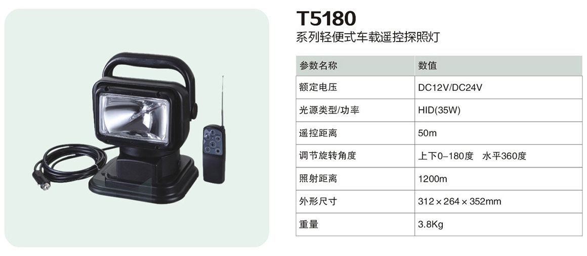 产品中心 移动照明系列 T5180系列轻便式车载遥控探照灯