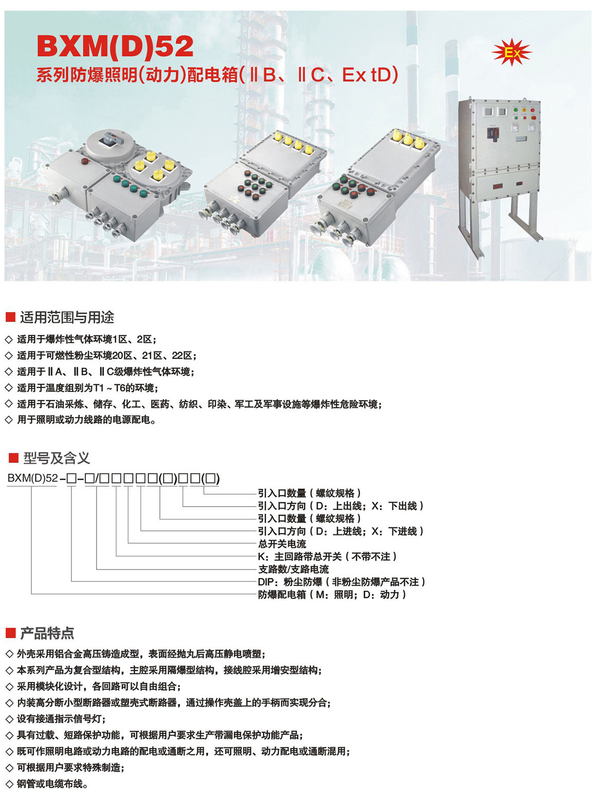 产品中心 防爆电器系列 BXM(D)52系列防爆照明(动力)配电箱(ⅡB、ⅡC、Ex tD)