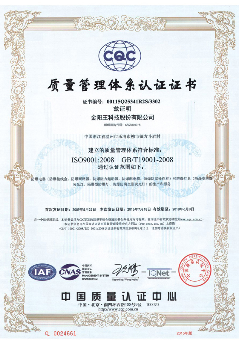 质量管理体系认证证书
